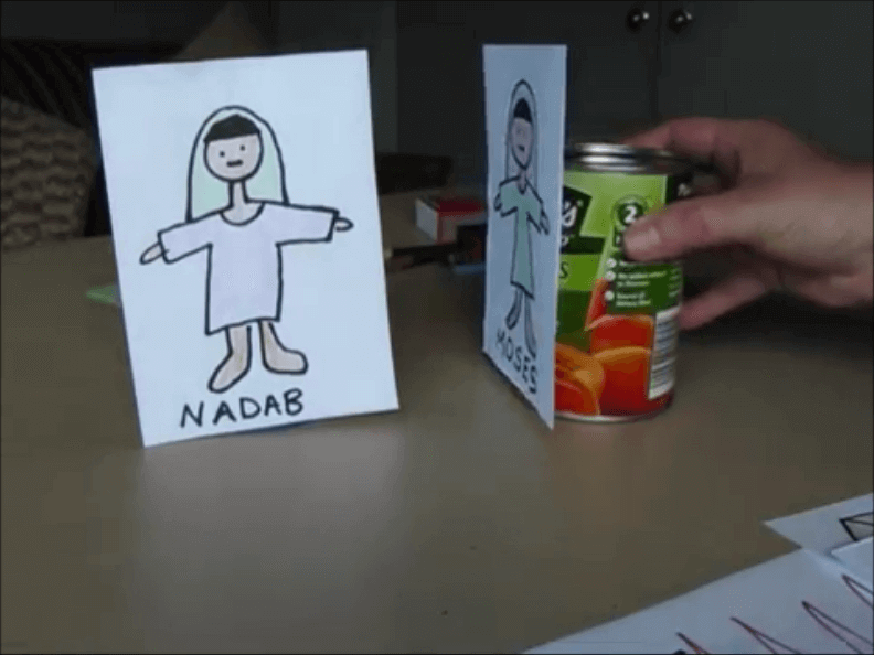 Draw simple characters from the Bible Story and attach them to upturned paper or plastic cups. These characters can be used to “act out” the story. More instructions and examples can be found here.