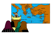 Paul continued his 2nd Missionary Journey and visited the cities of Thessalonica and Berea. Some people began to follow Jesus in Thessalonica, but others were jealous and caused trouble. Paul went on to Berea, where the people received the message of Jesus with great eagerness. They examined the Scriptures daily to see if Paul’s words were true. Troublemakers from Thessalonica soon followed and caused so much trouble that the Christians escorted Paul to Athens for his safety.