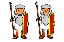 Sing “I’m in the Lord’s Army” with the children. “Who wants to explain what that song means? Are you really in an army? What does it mean to be in the Lord’s army? When a soldier in an army goes into battle he fights an enemy. Who do you think is the enemy of the Christian? That’s right; Satan- or sometimes he is called the Devil. He is our enemy because he wants us to do bad things and make God unhappy. He doesn’t even want us to be with God forever! When a soldier goes to battle he wears special gear (show some if you are able to obtain army gear). The gear that a soldier used to wear in the time that our New Testaments were written was called armour. Armour helped soldiers win battles. Do you think a regular soldier’s armour would help fight Satan? No, Satan is an invisible enemy. To fight Satan, a person has to be in God’s special kind of army and be God’s soldier. God’s soldier wears special kind of armour.”