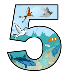On the fifth day of creation, God also filled the seas and rivers with living things. Not just fish but every creature living in the water was created. How many water creatures can we name? (fish, crabs, sting rays, crayfish, whales, dolphins, shrimp, snails, sharks . . .)