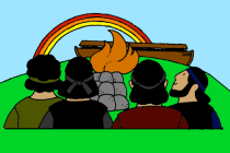 At that time, a rainbow appeared in the sky. God said to Noah, “That rainbow is a sign. It is the sign of the agreement that I made with all living things on earth.” The rainbow is a reminder that God will keep His agreement and never flood the earth again.