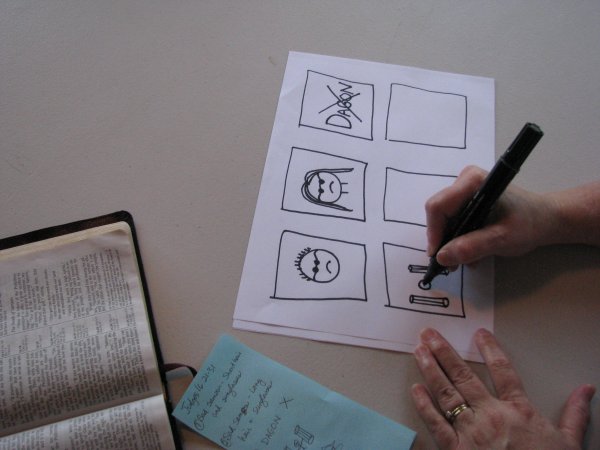 Full instructions for using this idea as a visual aid are found at Draw and Tell Visual Aids Made By Children, but it is also a great art activity. Before the lesson, plan how you will divide the story into “scenes.” Mark off that many numbered squares (or any shapes) on paper so that children will be able to draw the appropriate number of scenes, or print a template from the visual aid page. As you tell the story, ask the children to draw something in each box. For example: